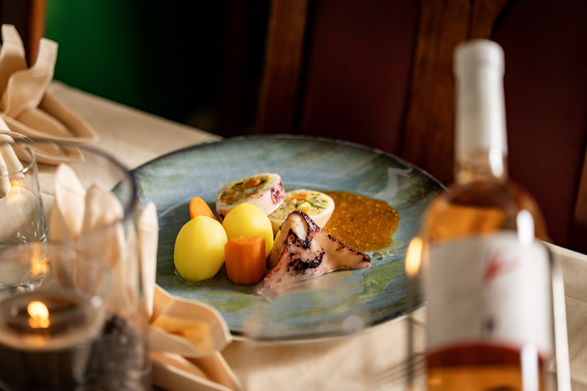• file kovača u umaku od žlahtine na palenti i blitvi