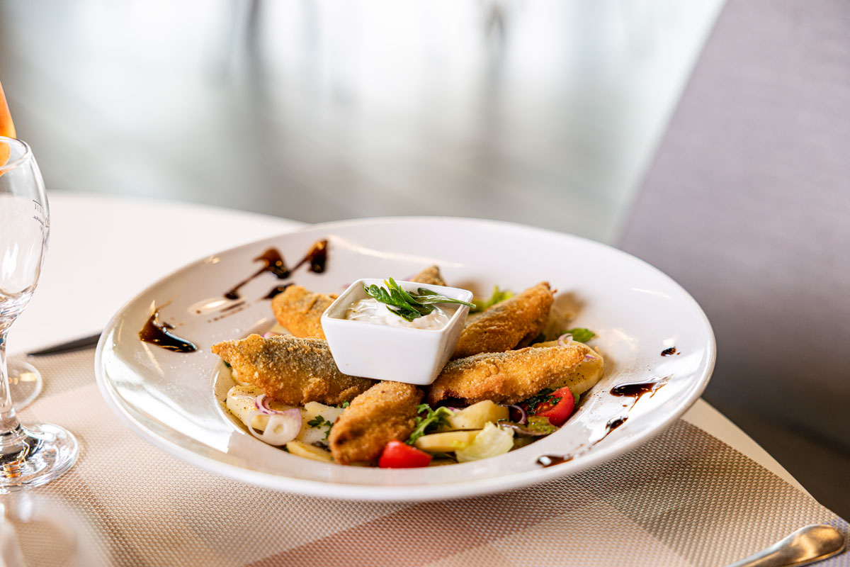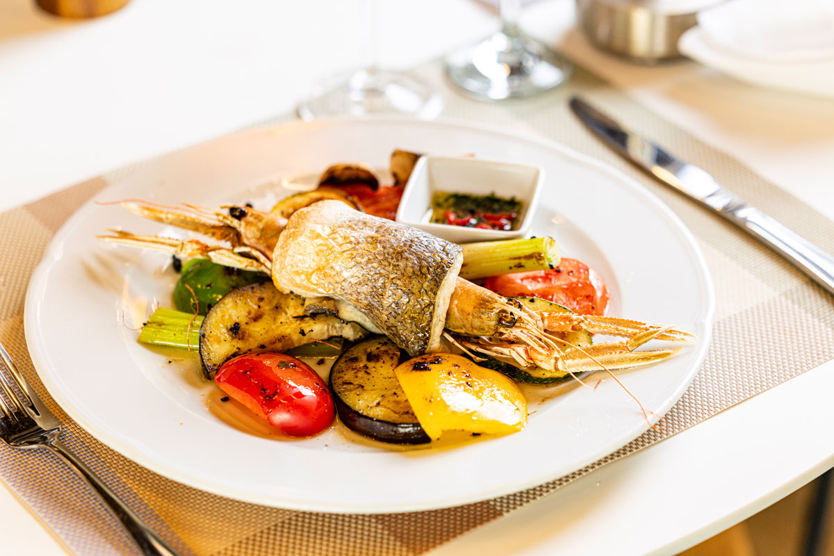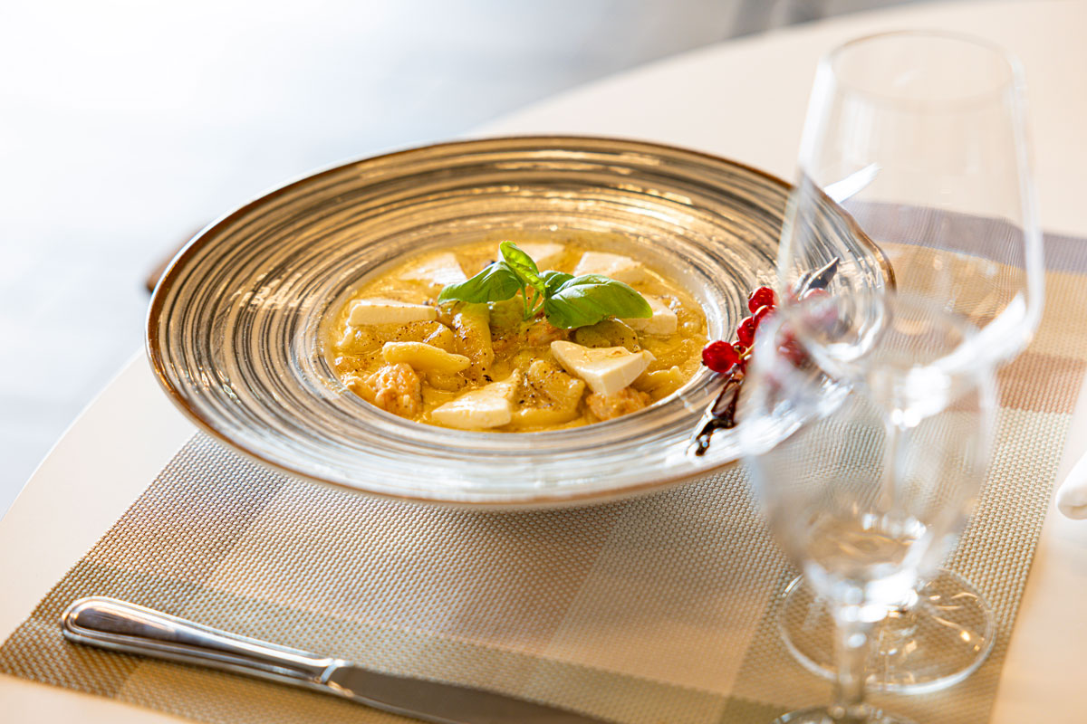 • domaći ravioli punjeni grdobinom u umaku od škampa