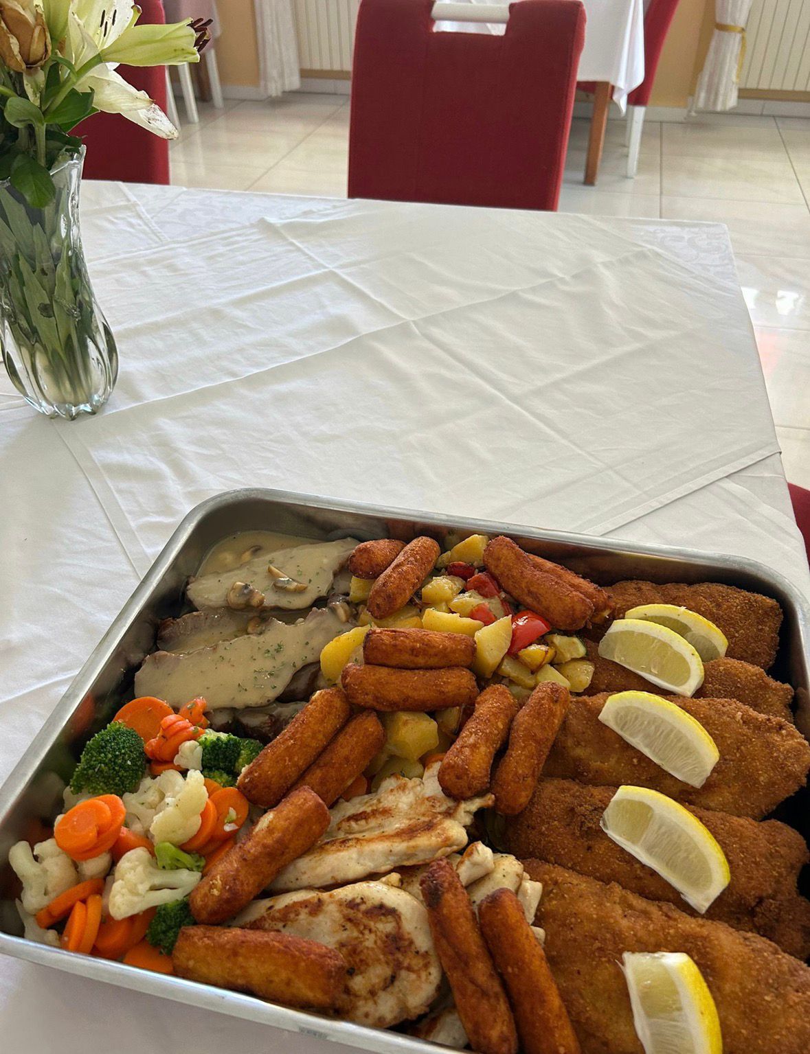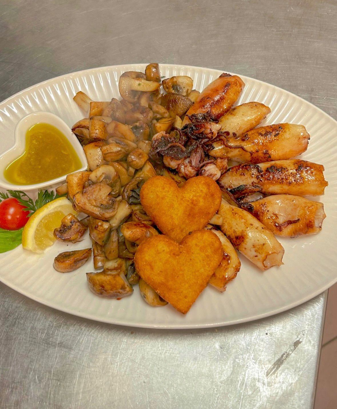 Posebno mjesto u ponudi zauzimaju riblji specijaliteti, pripremljeni od svježih, pažljivo odabranih namirnica, uz bogat izbor domaćih i međunarodnih jela.